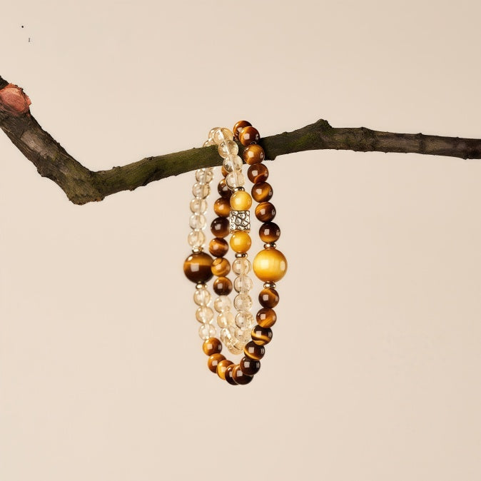 This double-layer bracelet showcases a powerful blend of Tiger’s Eye and Yellow Asai crystals in radiant golden tones. Tiger’s Eye is known to enhance courage, focus, and inner strength, while Yellow Asai is revered for its wealth-attracting properties. Together, they form a dynamic energetic duo—ideal for boosting determination, strengthening personal aura, and inviting success.