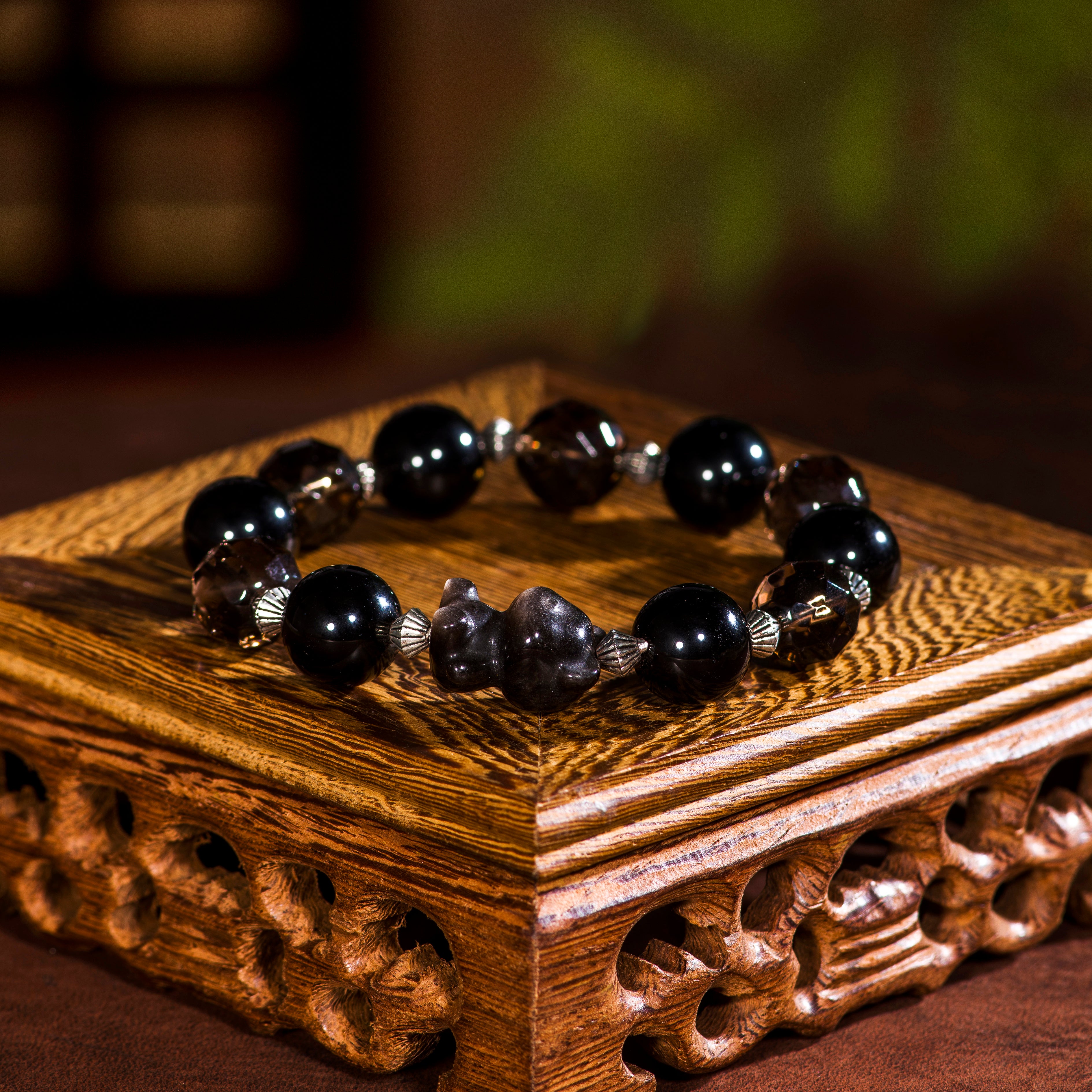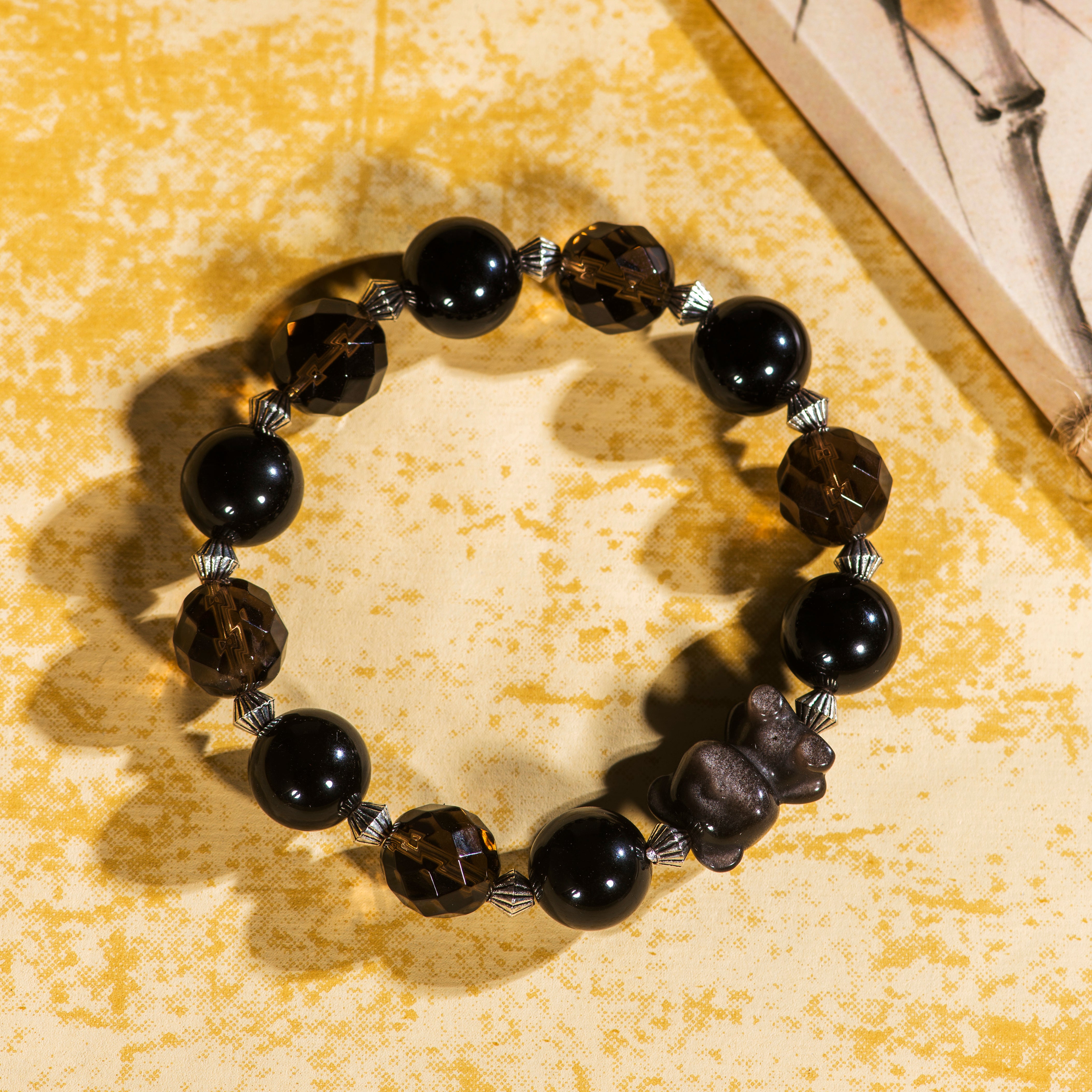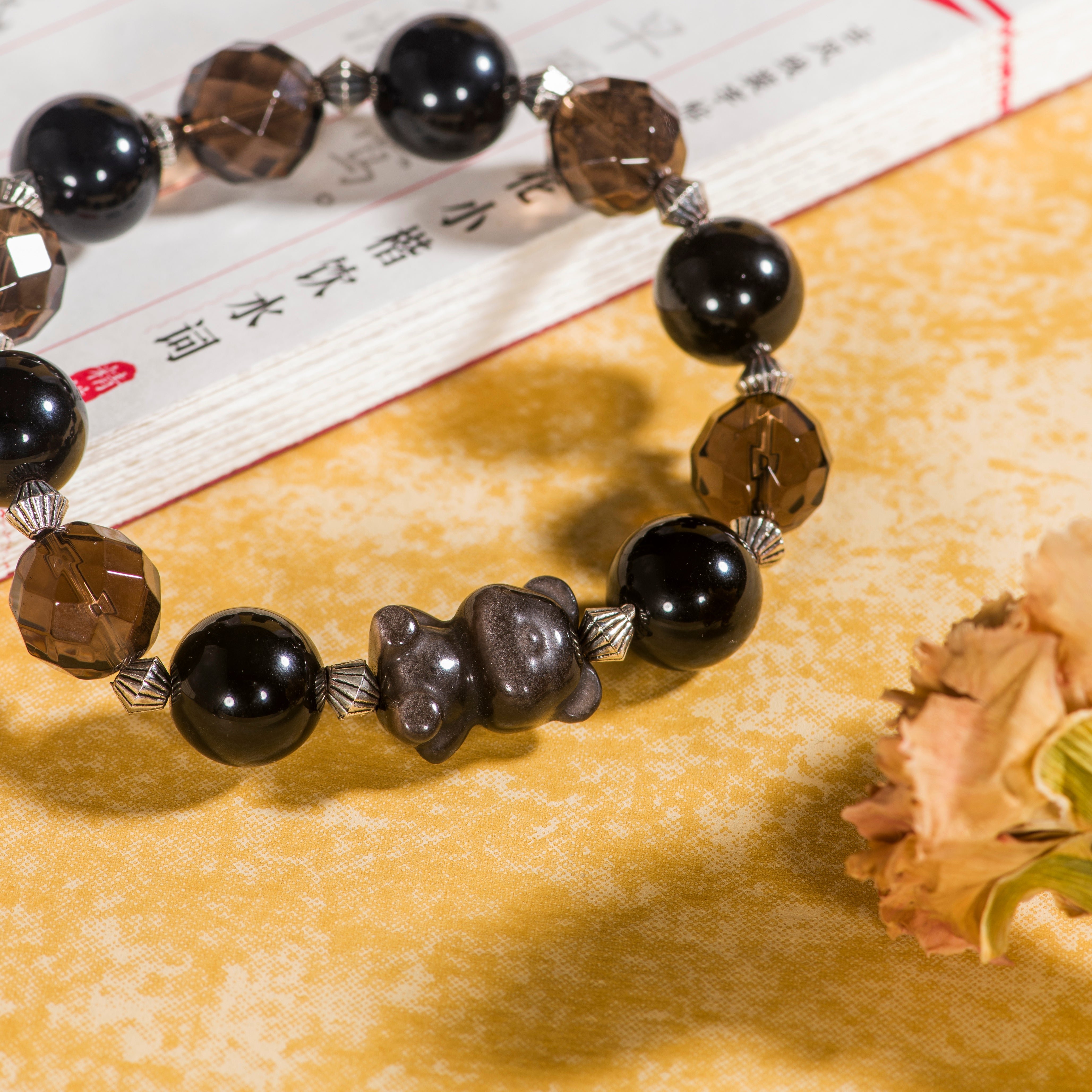 The Starlit Bear Energy Protection Bracelet combines the powerful energies of Obsidian and Tea Crystal, symbolizing protection and balance. Inspired by the adorable Obsidian bear, this bracelet provides emotional support while offering strong energetic protection. Obsidian is known for its powerful shielding properties, helping to clear negative energies and protect the wearer from external stress. Tea Crystal, with its warm hue and energy, promotes inner calm and balance. Ideal for both everyday wear and meditation, it is the perfect choice for boosting energy and protecting the spirit.